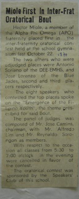 January 24, 1970 - First ritual of the first chartered members of the Ateneo chapter and formal existence of the chapter.