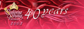 Zamboanga City's 2003 Binibining Pilipinas Beauty Pageant representative, Ms. Farrah Casilde Tuballa. The Grand Coronation Night: March 15, 2003 • Saturday • 8:00 PM |