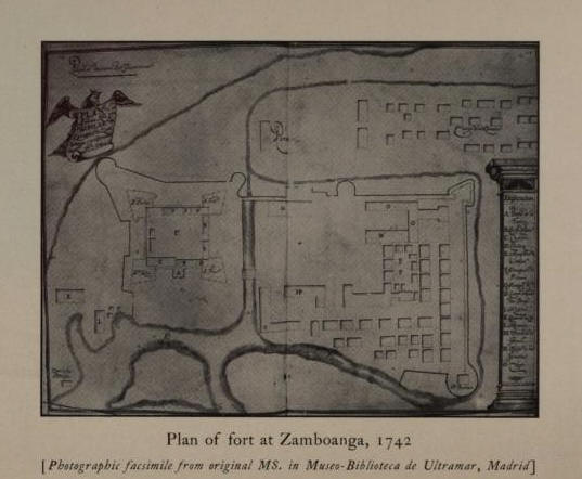 Plan of fort at Zamboanga, 1742, from original MS. in Museo-Biblioteca de Ultramar, Madrid, Spain.
