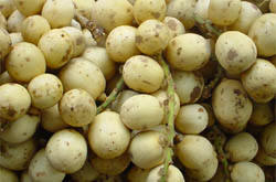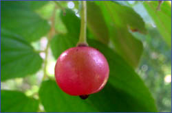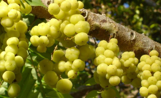 Roundish, yellowish when ripe, fruit, bunched up to a stem, a little bitter taste....
