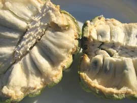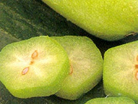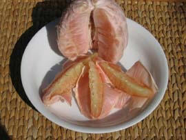 soft and juicy flesh which is sour. Seeds are few, flat and occur at the centre