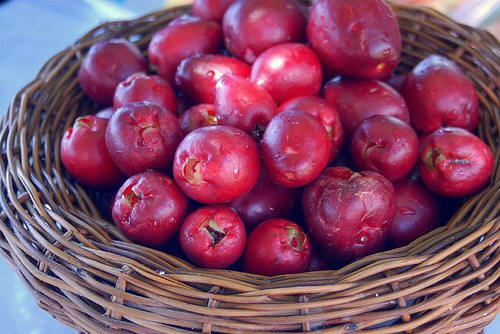 While the fruit is mostly eaten raw here in the Philippines (sometimes with rock salt), it is sometimes used for medicinal purposes in other countries or as a salve for the skin. In Puerto Rico, it is also made into a wine according to Desmond Tate’s book, Tropical Fruit of the Philippines… In this final photo, I spied a white makopa hybrid variety that was for sale at the market last weekend and the vendor said it was from Thailand. Marcotted and bearing fruit at just five feet in height, it was tempting to try and grow it in our small backyard… While there is some confusion over two very similar varieties (samarangense and malaccensis), makopa in other languages is known by the names malay apple, rose apple, java apple, curacao apple, pomme de java, etc. Here in the Philippines, Visayans know this fruit as tambis, while others call it tersana, yanba or yanbu.