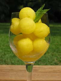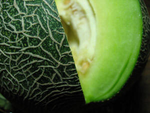 I saw this stunning green melon at the market last Saturday (along with lots of other melons and cantaloupes that are nearing the peak of melon season) and amel2the vendor said they were “Japanese” melons but grown here. I am always wary now when a vendor says something is Japanese as they are often totally clueless, see my post on Japanese tomatoes… I purchased one of these melons which looks very similar to those vaunted Cavaillon melons from France and took it home and placed it on my counter. Contrary to what most folks think, melons do NOT get riper once they have been cut from the vine. They might get juicier but they don’t get any sweeter so leaving them out to “ripen” really means you are simply waiting for them to get juicier… thus the best melons come directly from conscientious growers who harvest them at the peak of their ripeness. Sliced open, this melon was fragrant, juicy and sweet. Not the absolute best honey dew (as opposed to orange cantaloupe) I have ever had but a very good melon indeed. At PHP120 a kilo, this little baby cost PHP150 or so and would yield maybe 10 modest slices.