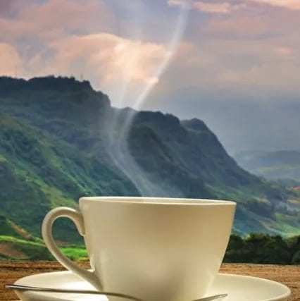 My engine starts with a cup of coffee in the morning.Mi makina ta funciona con un taza de cafe temprano aga.